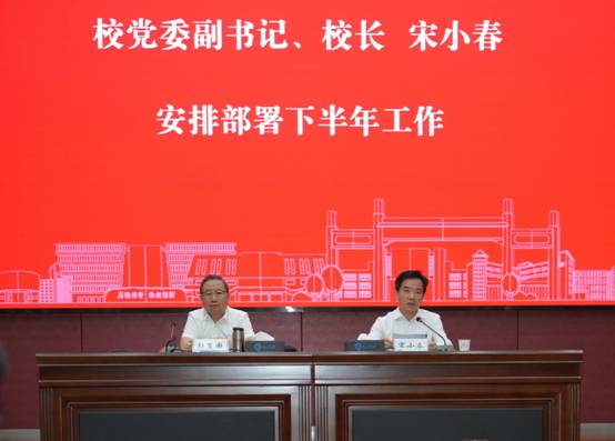 校党委副书记、校长宋小春从十个方面安排部署下半年重点工作,即持续不断强化学校党的建设、思想政治建设、学科建设、人才强校战略、人才培养、科学研究工作、强化国际交流与合作、学校治理体系建设,扎实做好开学准备各项工作、深入开展校园安全风险排查,要求全校师生进一步把思想和行动统一到校党委部署安排上来,紧紧围绕“改革创新年”工作主线,继续锚定一流学科建设战略目标和年度目标任务,团结一心、再接再厉谋发展、担使命,确保高质量完成全年目标任务、谋划好学校的“十五五”规划。