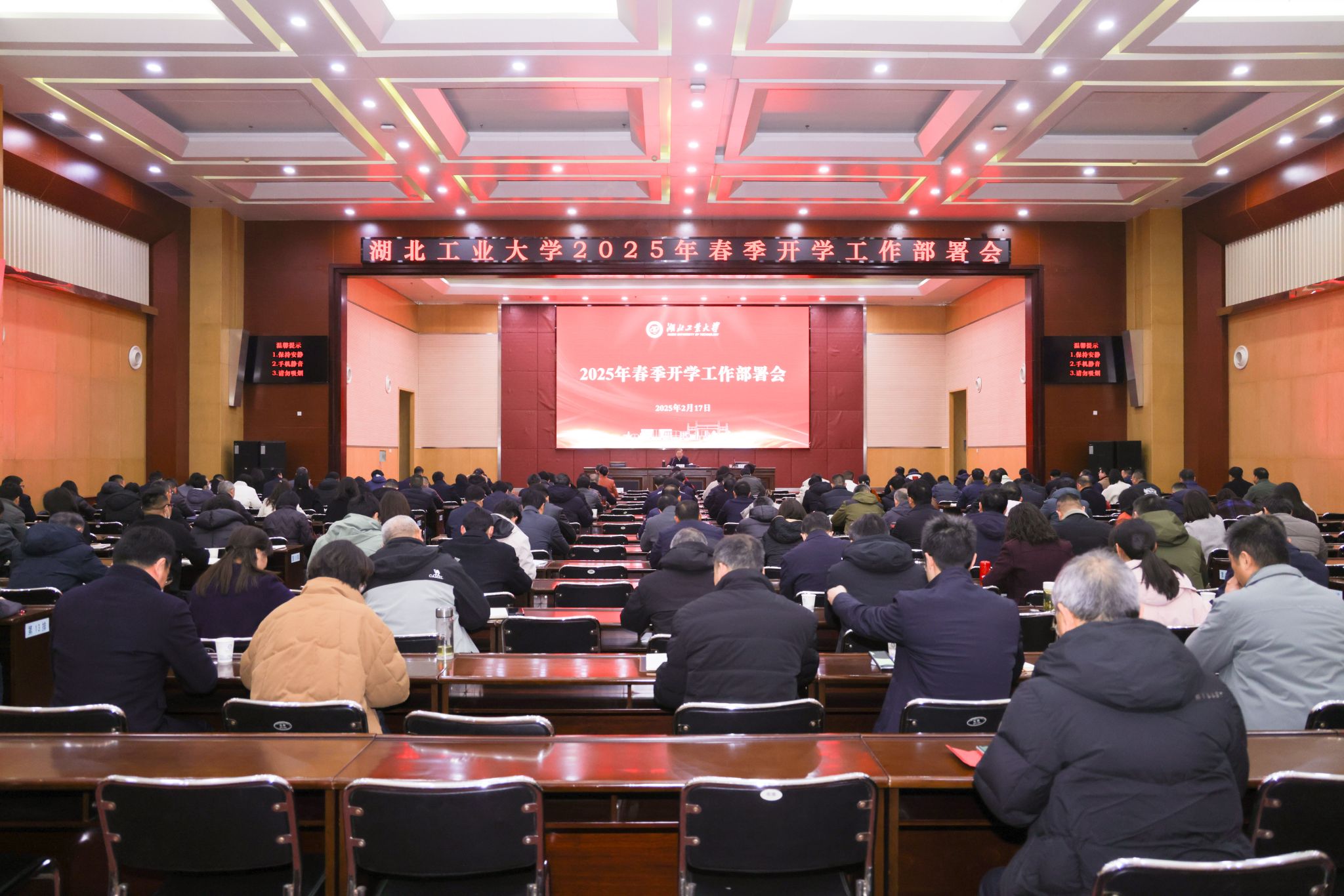 2月17日,学校在图书馆报告厅召开春季开学工作部署会,学习贯彻落实上级有关会议精神和文件要求,部署2025年主要工作,进一步统一思想、明确任务、振奋精神、凝聚力量,为更好推进学校高质量发展打好底、起好步、开好局。全体校领导出席会议,会议由校党委书记彭育园主持。