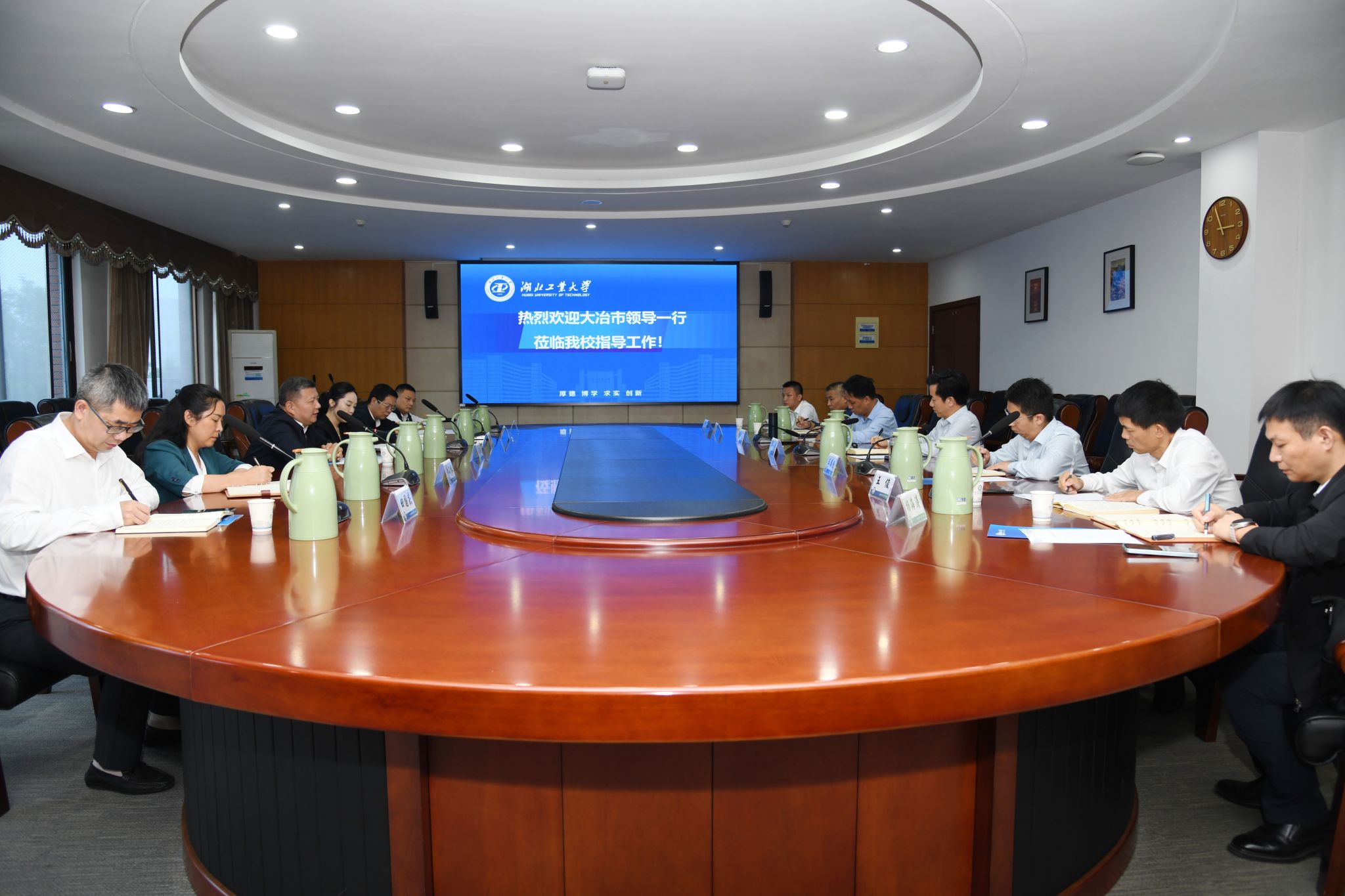10月17日下午,大冶市委副书记、市长、高新区党工委书记潘小进率队来校调研交流,校党委副书记、校长宋小春出席座谈交流活动。